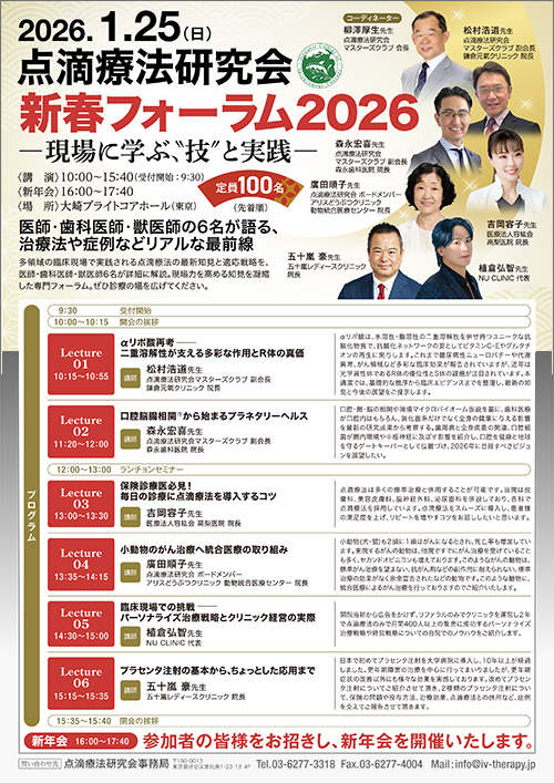 2026年1月25日(日曜日)「点滴療法研究会 新春フォーラム2026 -現場に学ぶ、”技”と実践-]開催いたします。